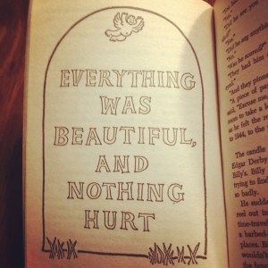And that “everything was beautiful” line is certainly not from the Bible; it’s from Slaughterhouse-5, a book that is very different from the Bible. But the one thing Slaughterhouse-5 has in common with the Bible is that they both explore just how much life can hurt sometimes.